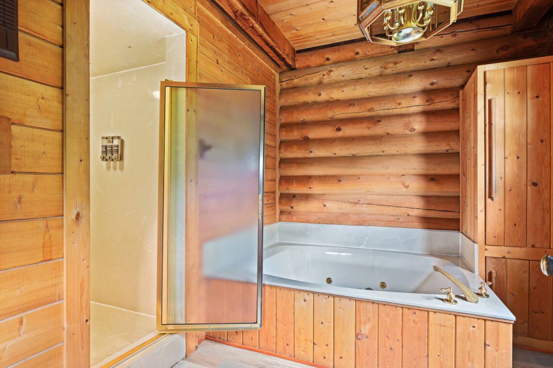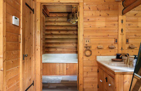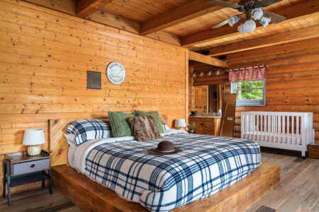 – **Master Bedroom (Main Floor): ** Relax in the luxurious master suite, featuring a king-size bed and a baby crib for your little one. Enjoy direct access to the back deck, where you can take in breathtaking views of the lake. The en-suite bathroom boasts a walk-in shower and a jetted tub, perfect for soaking after a day of adventure. A large walk-in closet provides ample storage for your belongings.