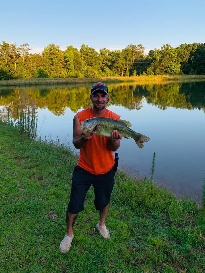 Enjoy the tranquility of your private stocked lake, complete with a brand-new dock and a row boat for leisurely afternoons on the water. After a day of adventure, unwind in the brand-new hot tub or gather around the fire pit under the stars for unforgettable evenings. Inside, challenge your friends to a game of pool or simply relax in the cozy, rustic ambiance that our cabin offers.