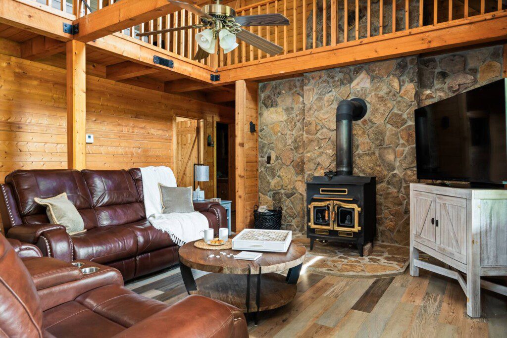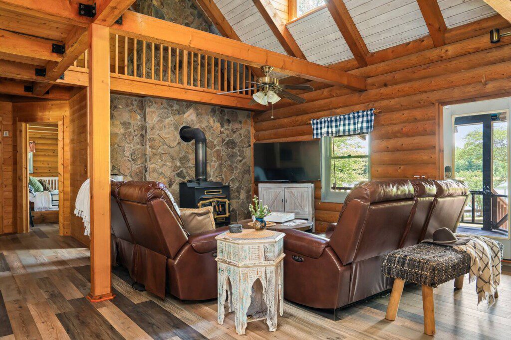 Escape to our spacious 3000 square-foot log cabin, nestled on 35 acres of private serene countryside. Perfect for families, large groups, and friends, our cabin comfortably sleeps up to 13 guests, making it the ideal getaway for your next vacation.