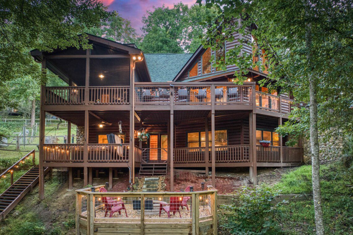 @MountainLakeBeach present “Trout Ridge”, a luxury 3,300 sq ft log cabin on private 2 acres of Fightingtown Creek. Trophy winning trout fishing, this luxury cabin has space for up to 8 guests & dog friendly with a fenced yard and gated driveway. Gorgeous gardens and landscaping surround the property making for a fairytale mountain retreat to relax and unwind. Hot tub, Weber gas grill, Stone fireplace indoor and outdoor, are just a few of the incredible amenities perfect for all guests to enjoy.
